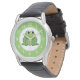 Jolie montre de grenouille verte conçue avec une adorable grenouille verte au centre avec du vert autour du bord extérieur et les chiffres en blanc. Il est parfait pour toute personne qui aime les mignonnes grenouilles souriantes et la couleur verte.