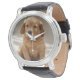Adorable sitting puppy giving puppy dog eyes to the camera.