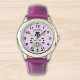 Lindo Diseño de Reloj para niñas con ilustracion de una Linda zebra de color blanca y negra sonriendo con un fondo Rosa y el Nombre de tu hija! Si tu hija esta aprendiendo a usar el reloj este puede ser un magnifico regalo. No dude y adquiera este lindo diseño para niñas ahora.