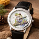 Portez un petit morceau de la nature avec vous avec cette montre fantaisiste personnalisée. Le visage est orné d'un charmant portrait aquarelle d'une grenouille d'arbre, ses yeux larges et pleins de vie. Peint dans des tons doux et terreux, l'art capture la beauté tranquille d'un étang forestier et l'esprit doux d'une créature aimée. C'est le parfait mélange d'un garde-temps fonctionnel et d'un bel accessoire, apportant un charme naturel et paisible à votre poignet.