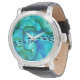 Ce visage de montre a un arrière - plan aquarelle avec silhouette écossais poisson nageant à travers et bulle montant à la surface. Idéal pour les amateurs de poissons ou d'océan.