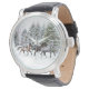 Trois chevaux, un gris, une baie et un cheval de peinture, trot et canter à travers un paysage enneigé dans cette oeuvre numérique originale créée en DAZ 3D par l'artiste Jayne Wilson. Il s'agit d'une montre de style alternatif qui n'a pas les heures marquées sur le visage.