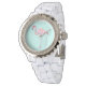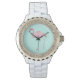 Montre Flamant rose rose - arrière - plan vert menthe. Fête à thème Flamant rose ? Cette collection présente de jolis objets mignons et preppy avec un flamant rose blanc et coloré. Cadeaux chic, girly et preppy. Le design est tiré d'une peinture de flamand peinte à la main par Kristen Abrahamson. Voir aussi Imprimés Flamants roses, cartes Flamants roses, cadeaux de Flamant rose, Flamant rose rose, Turquoise, Aqua et Vert Menthe. C'est une collection tellement amusante et colorée que tout le monde va adorer !