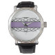 Elégante et classe Deco Flourish Watch avec une bordure tourbée violet fantaisie. Facile à customiser, ajoutez simplement du texte personnalisé dans les champs de texte fournis. Modifiez la couleur arrière - plan à n'importe quelle couleur. Cliquez sur "Customiser" pour trouver d'autres options de personnalisation.