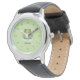 Une montre verte avec des chiffres, une illustration d'une grenouille mignonne sur son étang et le texte personnalisable ci-dessous ! Un beau cadeau pour un enfant d'anniversaire, les chiffres lui permettront d'apprendre les temps plus facilement!