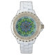 Montre de Motif bleu vert en mosaïque Mandala Retr