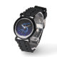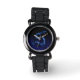 Le design de cette montre de Parties scintillant eWatchFactory est un dragon d'araignée bleu curling se détache au-dessus des flammes de bleu devant un ciel nocturne avec la constellation d'étoiles Draco.