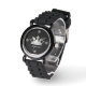Jolie montre à poignet girly avec des graphismes d'un ton argenté et d'une couronne blanche, sur un arrière - plan noir décorant le visage de la montre. Les graphiques de diamants comme les strass représentent les heures 12, 3, 6, et 9 O'clock. Personnalisez le texte blanc de fantaisie, sous la couronne, pour vous-même ou comme une excellente idée cadeau.