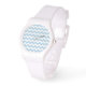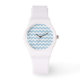 Une montre à poignet élégante et sportive, avec une sangle blanche et un chevron motif en tendance bleu et blanc.