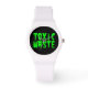 Very nicely made. The design is perfect. Comfortable and light watch. The plastic is nice and smooth and not rigid at all. Love it that you can see it at night! Excellent print quality. Even the small detail of text came out well.
