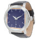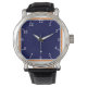 Vous apprécierez cette montre classique et élégante au visage bleu foncé et orange.