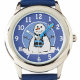montre cadeau de Noël. Snowman dans un paysage d'hiver gelé fait un dessin amusant style montre design que les enfants vont adorer! bonhomme de neige de Noël.