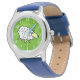 Caricature en mouton avec un arrière - plan de champ vert. Cadeau pour un enfant.