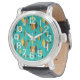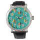 Cette montre pour hommes a une conception atomique moderne du milieu du siècle de diamants, et des éclats d'étoiles sur un champ de turquoise.
