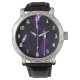 Montre avec un design rétro audacieux sérigraphié avec de grandes fermetures à glissière en violet, noir et blanc. Un design personnalisable pour personnaliser avec votre propre texte, photos et idées. Créé à l'aide d'une photographie originale et de techniques numériques de Jess Perry.