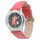 Montre de football noir et drôle avec l'illustration colorée d'un dinosaure drôle avec un souffle de feu jouant au football. Cette montre amusante pour enfants ferait un grand cadeau pour les enfants qui aiment jouer au football.
