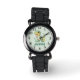 Adorable montre avec un design de dinosaure mignon, personnalisable avec votre nom. Parfait pour les enfants qui aiment les dinos et apprendre à raconter le temps dans le style!