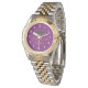 Une montre au design chic avec l'illustration d'une casquette et d'un diplôme de fin d'études, avec la classe 2018 (vous pouvez customiser l'année) et le nom du diplômé écrit ci-dessous. Placez-vous sur un joli arrière - plan violet avec des lettres dorées. Simple, moderne et élégant.