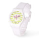 Montre Dragonfly rose et violet sur les bandes vertes de