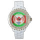 Drapeau canadien Port Richman Montre nautique. Un cadran vert sportif avec image entièrement personnalisable drapeau canadien et des textes personnalisables "Port Richman", texte sur l'écusson "Yachting", initiales "P" et "R" montre-bracelet à voile. Une montre cool du drapeau du Canada pour les amateurs de sports nautiques et les propriétaires de bateaux et de yachts du Brésil.
