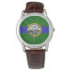 Regarder avec le drapeau de Chattanooga, Tennessee. Un drapeau vert et bleu avec le sceau de la ville au centre