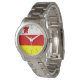Montre avec drapeau de la ville de Père Noël Barbara, Californie; drapeau avec tricolore vertical de blanc, rouge et jaune, avec illustration d'un fort rouge dans le coin supérieur gauche