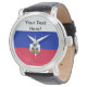 produit parfait pour la célébration de la fête nationale du 26 juin. j'ai acheté la montre en parcourant, je n'ai pas demandé sa conception ni sa réalisation. néanmoins j'envisage au vu de la qualité de fabrication j'envisage de passer une future commande personnelle