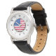 Drapeau féminin classique noir bracelet en cuir Watch USA