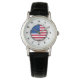 Montre Drapeau féminin USA Classic Black Leather Strap Wa