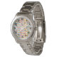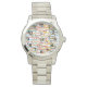 Cette montre pour femmes a un design moderne du milieu du siècle des gribouillages qui courent verticalement dans des couleurs rétro avec des étoiles noires et des cercles éparpillés sur le design.