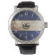 Montre El Salvador Drapeau sur le vieux grain de bois