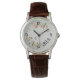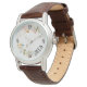Une montre classique pour dames avec élégante aquarelle pastels mortes art de vie imprimé sur un arrière - plan de couleur platine. Modifiez ou supprimez facilement les initiales monographiques à l'aide du Modèle fourni. Conçu avec un bracelet en cuir marron en croix et un coque en alliage d'argent. Il y a 15 styles disponibles, dont quatre surdimensionnés. Japon Quartz® analogique à trois mains. Voir "À propos de ce produit" sur le côté pour des spécifications détaillées sur les tailles, les matériaux, le type de fermeture, la garantie.