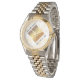 Célébrez le 3ème anniversaire du mariage en cuir et un amour qui résiste à l'épreuve du temps avec cette montre élégante ! Un élégant lettrage noir avec des confettis hexagonaux dorés et un diamant doré sur un luxueux arrière - plan en cuir blanc ajoutent une touche mémorable à cette occasion spéciale et à cette étape importante. Customiser avec les noms et dates du mariage du couple. Design © W.H. Sim. Voir plus sur zazzle.com/expressionsoccasions