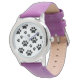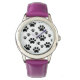 Cette montre met en scène des empreintes de pattes en noir sur un arrière - plan blanc. Plusieurs styles et couleurs de montre au choix. Il suffit d'utiliser les boutons à droite de la conception pour voir l'autre option!