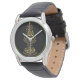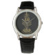 Montre en cuir noir classique pour hommes, imprimée avec une calligraphie islamique originale et moderne de "La Verse de la Lumière" - Ayat al Nur, comme révélé au verset 35 de Surah al Noor, Chapitre 24 du Saint Coran de l'Islam.