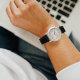 Montre personnalisée en marbre rose pour femmes – Cadran avec nom personnalisé – Chiffres romains argentés – Cadeau floral élégant.