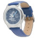 Bleu, creuseur, construction, véhicule, transport, attention pour les enfants. Personnalisé, Enfants, Nom, acier bleu garçons montre. Personnalisez-le avec le nom de votre enfant.