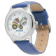 Bleu, creuseur, pelle de construction, véhicule, transport, attention pour les enfants. Personnalisé, Enfants, Nom, acier bleu garçons montre. Personnalisez-le avec le nom de votre enfant.