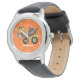 Bleu, creuseur, pelle de construction, véhicule, transport, attention pour les enfants. Personnalisé, Enfants, Nom, acier bleu garçons montre. Personnalisez-le avec le nom de votre enfant.