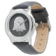 Montre pour enfants en acier inoxydable avec un visage noir et bracelet noir avec imprimé fantôme d'Halloween. Customisez cette montre ou achetez tel quel.