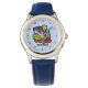 Bleu, train, transport, locomotive, véhicule, attention aux enfants. Personnalisé, Enfants, Nom, acier bleu garçons montre. Personnalisez-le avec le nom de votre enfant.