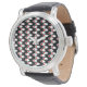 Cette montre masculine a un design moderne du milieu du siècle des ovales blancs avec des cercles rouges reliés par des lignes blanches sur un champ de noir. Vous voulez des couleurs différentes ? Message-moi.