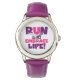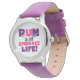 Si vous aimez courir, courir 5Ks, 10Ks, demi-marathons ou marathons, vous adorerez ce texte coloré en violet et rose qui lit Run and Embrace Life ! Run and Embrace Life T-shirts, sacs, tasses, cartes, autocollants, iPhone et autres coques de dispositifs électroniques, magnets, planches à sec, montres, et bien plus encore!