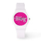 Funky rose visage bling texte design montre de mode. La conception de la bille présente des diamants faux pour ce peu de scintillement! Personnalisez en ajoutant votre nom, logo, texte ou graphisme. Un cadeau parfait pour un être cher. Commandez les vôtres dès aujourd'hui ! Visitez mon magasin pour voir nos conceptions et nos produits! https://www.zazzle.co.uk/store/vcreativedesign