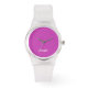 Cette montre au poignet, avec sa bracelet rose chaud et son visage de montre violet, est un cadeau formidable pour Noël, anniversaire, Fête des Mères, ou autre occasion. Le nom est personnalisé. Tous droits réservés © 2013 Alan & Marcia Socolik.