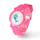Une jolie princesse de sirène en robe verte turquoise avec une tiare royale. Modèle pour un nom, des lettres turquoise. Numéros de visage de l'horloge turquoise. Arrière - plan blanc.