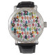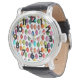 Cette montre pour hommes a un design moderne du milieu du siècle avec des ensembles de trois feuilles dans des tons de décolleté rétro.