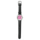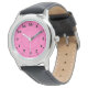 Une couleur vive et solide "Hot Pink" Girls' acier inoxydable bracelet en cuir noir. Hot Pink est un rose rose vif. Cliquez sur "Personnaliser" pour changer de couleur ou pour ajouter un motif ou un design. Code hexadécimal du produit : #ff69b4