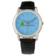 Watch with flag of city of Juneau, Alaska; blue flag with stylized illustration of trees