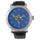 Watch with design with a flag of historic county of Sussex, in England, Great Britain; blue flag with six gold martlets